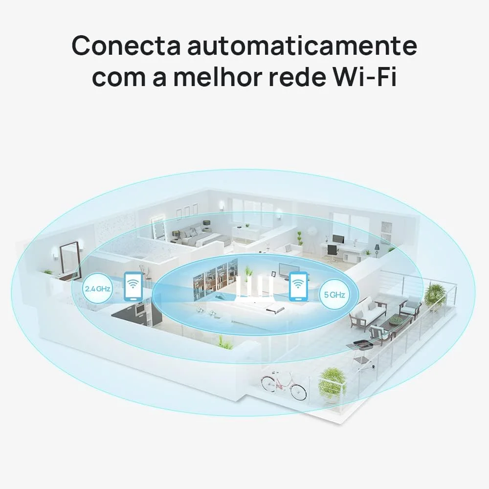• Banda de 5 GHz: até 1201 Mbps, ideal para alta performance.
