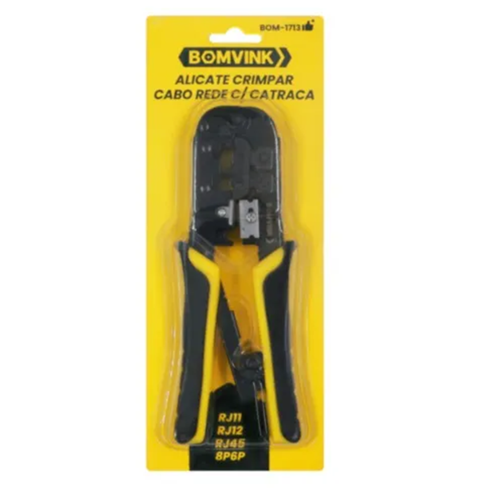ALICATE DE CRIMPAGEM RJ-45/4J-11/RJ-12 C/ CATRACA E DECAPADOR BOMVINK (BOM-1713) [0110614]