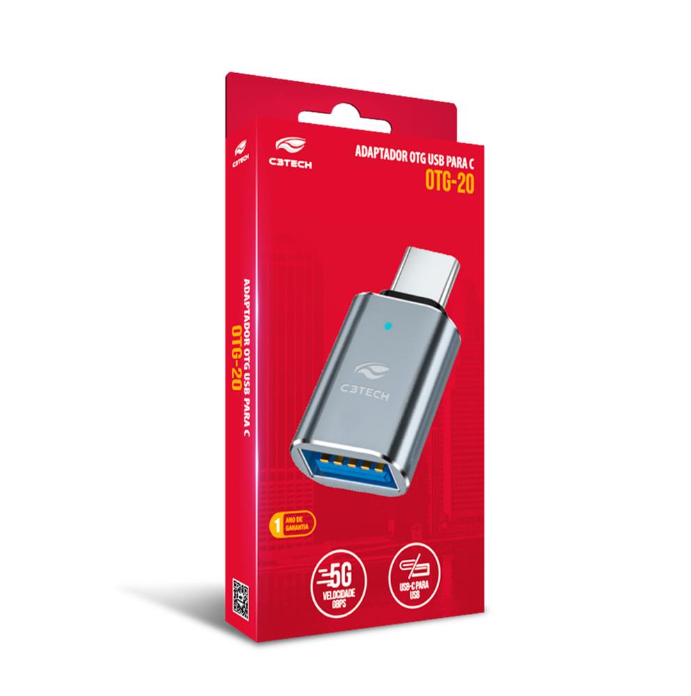 ADAPTADOR OTG USB-C 3.0 MACHO X USB-A 3.0 FEMEA PRATA C3TECH (OTG-20) [0110747]