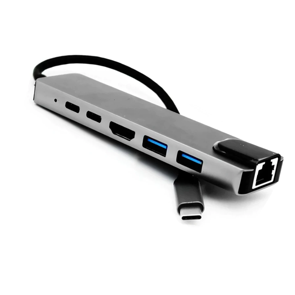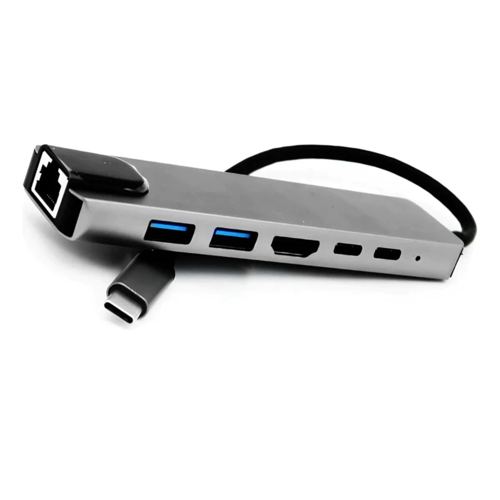 HUB USB-C 3.0 MACHO X 3 PORTAS USB-A 3.0 + 2 PORTAS USB-C + 1 PORTA HDMI + ADAPTADOR DE REDE GIGABIT ETHERNET RJ-45 10/100/1000 ALTOMEX (AU-582) [0110792]